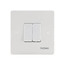 This white standard range slim Tronic 2 gang 2-way switch has smooth edges to complement any contemporary home or workplace decor.